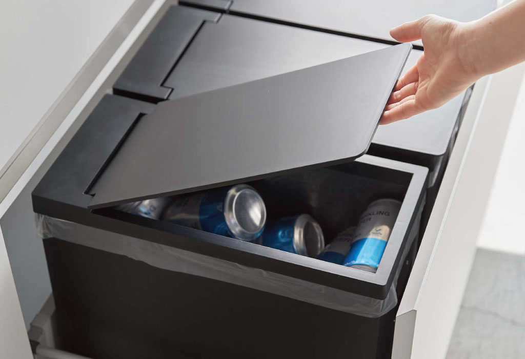 フタは片手で開閉できます。ゴミ箱の中身が見えないので生活感を隠すことができます。ゴミのニオイ漏れも防いでくれるので衛生的です。