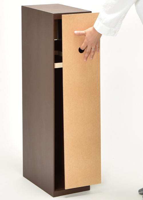 一見ゴミ箱に見えないおしゃれな木目調ゴミ箱。隙間20cmに対応するスリムサイズ。45リットルゴミ袋に対応しています。スイング式でゴミ捨ても簡単